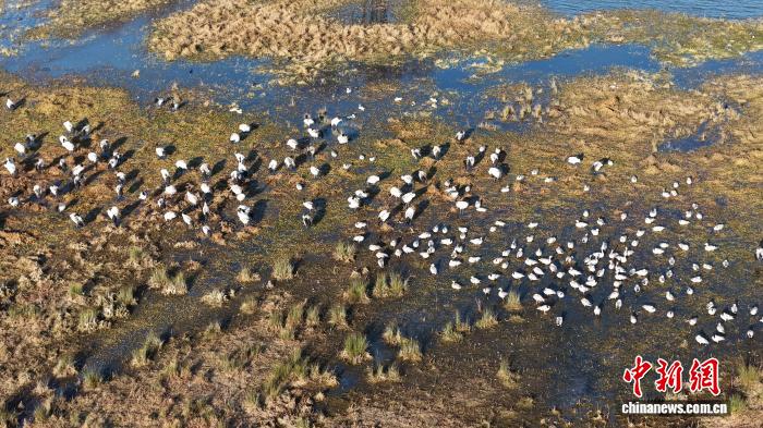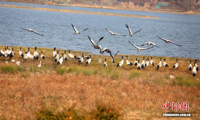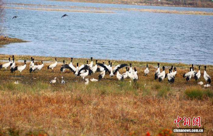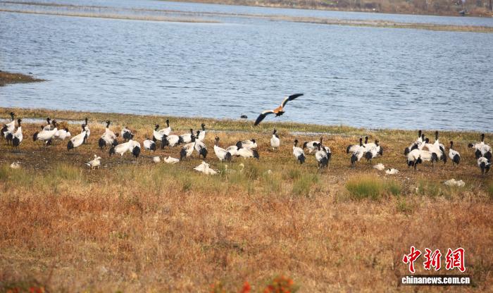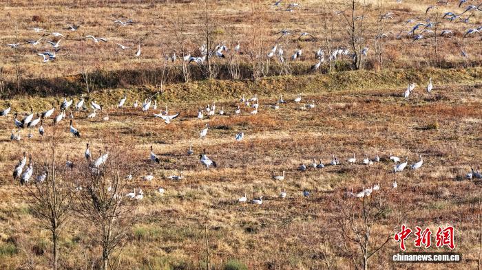 今日三五成群的乌颈鹤正在威宁自制县锁黄仓邦家干天花园安闲寻食。罗喜贵 摄
